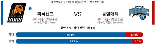2월 13일 11:00 NBA분석 피닉스 : 올랜도