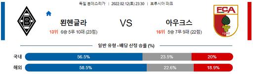 분데스리가 2월 12일 23:30 묀헨글라트바흐 : 아우크스부르크