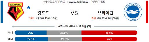 프리미어리그 2월 13일 00:00 왓포드 : 브라이턴 앨비언