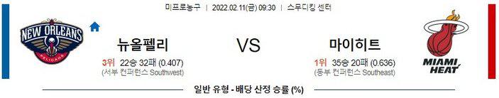 【NBA】 2월 11일 뉴올리언즈 vs 마이애미 히트