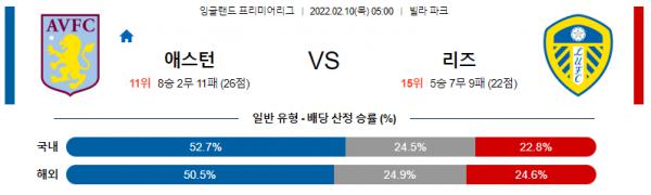 【프리미어리그】 2월 10일 아스톤(애스턴) 빌라 vs 리즈 유나이티드