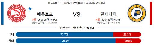 2월 9일 09:30 NBA분석 애틀랜타 : 인디애나