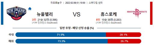 2월 9일 10:00 NBA분석 뉴올리언스 : 휴스턴