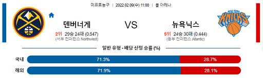 2월 9일 11:00 NBA분석 덴버 : 뉴욕