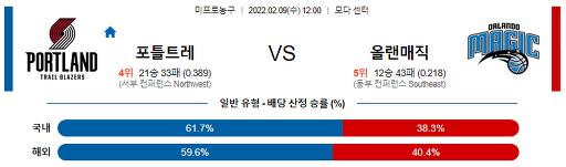 2월 9일 12:00 NBA분석 포틀랜드 : 올랜도