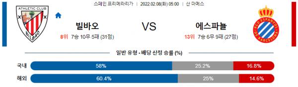 【프리메라리가】 2월8일 아틀레틱 빌바오 vs RCD 에스파뇰F