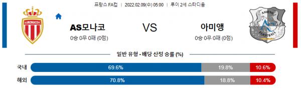 【프랑스 FA컵】 2월9일 AS 모나코 FC vs 아미앵 SC● 모나코 (리그 6위 / 무승패승승)