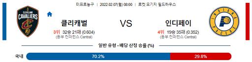 2월 7일 08:00 NBA분석 클리블랜드 : 인디애나