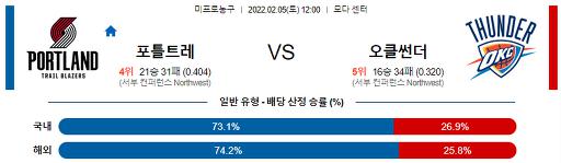 2월 5일 12:00 NBA분석 포틀랜드 : 오클라호마시티