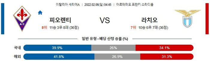 【세리에A】 2월 6일 피오렌티나 vs 라치오