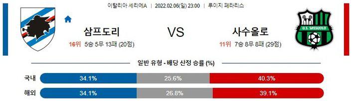 열람중 【세리에A】 2월 6일 삼프도리아 vs US 사수올로 2022.02.05 327