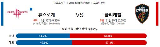 2월 3일 10:00 NBA분석 휴스턴 : 클리블랜드