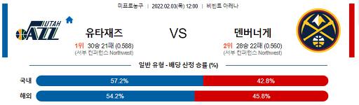 2월 3일 12:00 NBA분석 유타 : 덴버