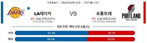2월 3일 12:30 NBA분석 LA레이커스 : 포틀랜드