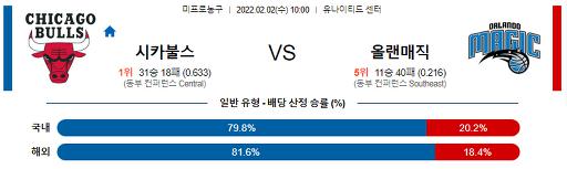2월 2일 10:00 NBA분석 시카고 : 올랜도