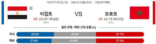 네이션스컵 1월 31일 00:00 이집트 : 모로코