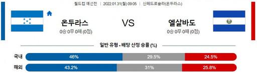 온두라스의 우세를 점친다. 홈 이점도 있고, 지면 공식적으로 탈락할 수 있다는 것이 조금 더 강한 동기부여다. 서로 원수지간인 나라간의 대결이라 난투극으로 인한 퇴장 같은 변수가 많다. 온두라스가 괜히 경기를 터뜨릴 수 있다. 그래서 가장 확실한 픽은 언더 ▼(2.5)다. 서로 득점력에서는 좋지 못한 모습을 보여주고 있기 때문에 이번 경기도 저득점으로 이어질 것이 유력하다다. 온두라스 승 / 언더 ▼(2.5)가 유력하다.