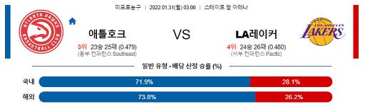 1월 31일 NBA분석 애틀랜타 : LA레이커스