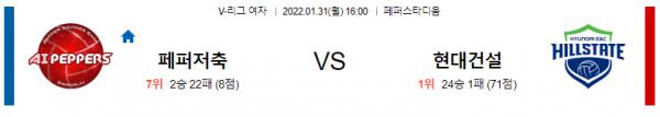 열람중 [KOVO 여자배구] 1월 31일 광주 페퍼저축은행 AI vs 수원 현대건설 2022.01.31 359