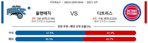1월 29일 09:00 NBA분석 올랜도 : 디트로이트