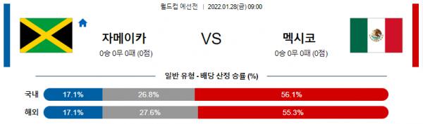멕시코가 두터운 선수층을 바탕으로 자메이카를 공략할 준비를 마쳤다. 이미 유럽에서 검증을 마친 공격수들이라 다득점 승리까지 예상 가능하다. 자메이카 특유의 역습은 무섭지만 안토니오가 볼 소유권 상실이 많다는 것을 이용하여 최대한 강한 압박을 가하며 수비할 것이다. 멕시코가 다득점 / 무실점 경기를 펼칠 가능성이 높으므로 멕시코의 핸디(+1.0) 승도 유력하다. 멕시코 승 / 언더(2.5) / 멕시코 핸디 승 주소모두 좋은 선택지다.