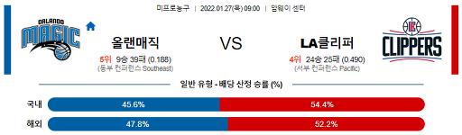 1월 27일 09:00 NBA분석 올랜도 : LA클리퍼스