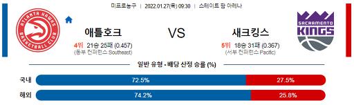 1월 27일 09:30 NBA분석 애틀랜타 : 새크라멘토
