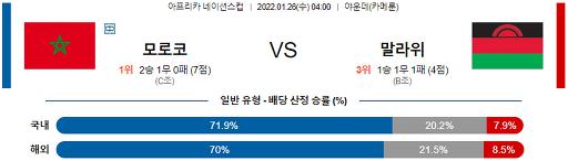 아프리카 네이션스컵 1월 26일 04:00 모로코 : 말라위