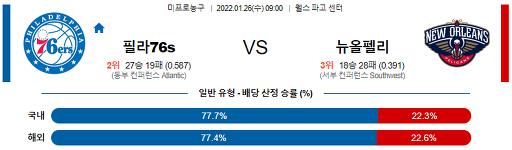 1월 26일 09:00 NBA분석 필라델피아 : 뉴올리언스