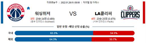 1월 26일 09:00 NBA분석 워싱턴 : LA클리퍼스