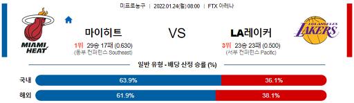 1월 24일 08:00 NBA분석 마이애미 : LA레이커스