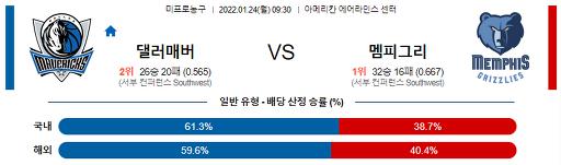 1월 24일 09:30 NBA분석 댈러스 : 멤피스