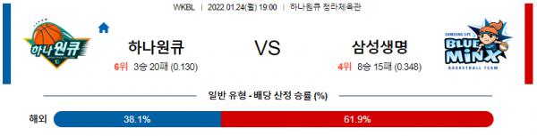 삼성생명은 직전경기(1/22) 원정에서 KB스타즈 상대로 69-75 패배를 기록했으며 이전경기(1/17) 원정에서 BNK 썸 상대로 70-66 승리를 기록했다. BNK 썸 상대로 6연패에서 벗어나는 승리가 나왔지만 연승 도전을 물거품 되었으며 시즌 8승17패 성적. KB스타즈 상대로는 배혜윤(4득점)이 상대 트윕타워에 막혔고 전반전(24-41)에 점수 차이가 많이 벌어진 것이 문제가 되었던 경기. 골밑 공격이 차단이 되자 외곽을 맴돌다 시도한 슛이 림을 외면했으며 볼이 없는 상황에서 움직임이 정체 되었던 탓에 찬스를 만들지 못했던 상황. 다만, 후반전 이주연(16득점), 윤예림(10득점), 강유림(15득점)이 모션 오펜스를 통해서 상대 빅 라인업의 느린 스피드를 공략했고 김단비(21득점)의 분전으로 점수 차이를 많이 줄이는 모습을 보여준 것은 위안이 되는 요소.
