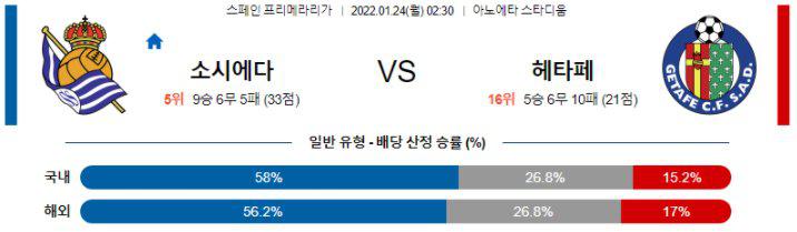 【Laliga】 1월 24일 레알 소시에다드 vs 헤타페 CF