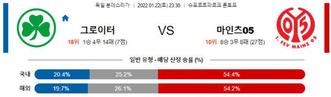 열람중 [분데스리가] 1월 22일 그로이터 퓌르트 vs 마인츠 2022.01.22 319