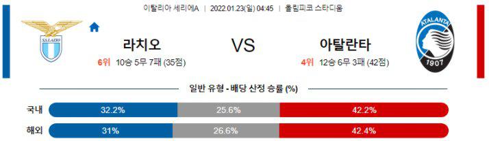 [세리에A] 1월 23일 SS 라치오 vs 아탈란타 BC