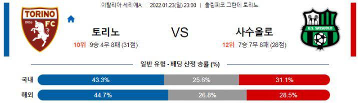 [세리에A] 1월 23일 토리노 FC vs US 사수올로 칼초
