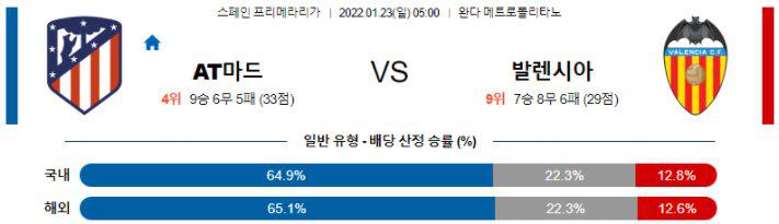 【Laliga】 1월 23일 AT 마드리드 vs 발렌시아