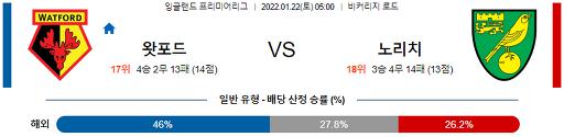 프리미어리그 1월 22일 05:00 왓포드 : 노리치 시티 FC