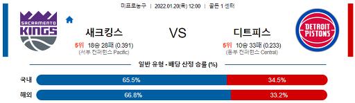 1월 20일 12:00 NBA분석 새크라멘토 : 디트로이트