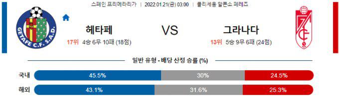 【Laliga】 1월 21일 헤타페 vs 그라나다
