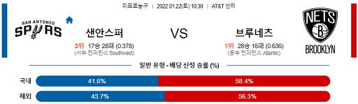 1월 22일 10:30 NBA분석 샌안토니오 : 브루클린