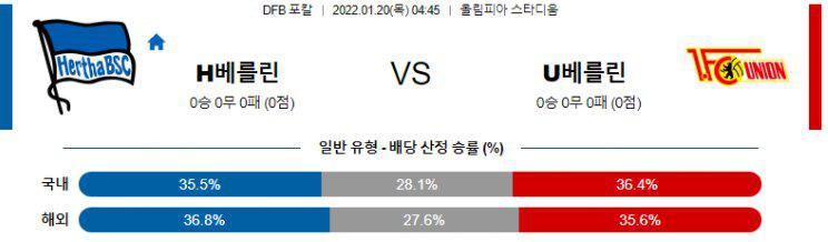 【독일DFB포갈】 1월 20일 헤르타 베를린 vs 유니온 베를린