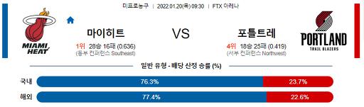 1월 20일 09:30 NBA분석 마이애미 : 포틀랜드
