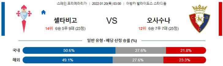【Laliga】 1월 20일 셀타 비고 vs 오사수나