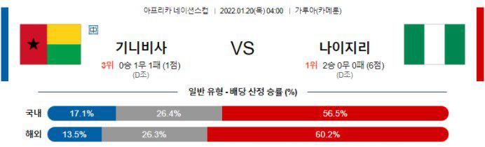 【아프리카 네이션스컵】 1월 20일 기니비사우 vs 나이지리아