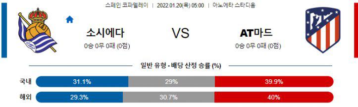 [스페인 코파델레이] 1월 20일 소시에다드 vs AT 마드리드소시에다드 (리그 5위 패패패무승)