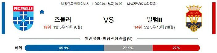 [에레디비시] 1월 15일 즈볼레 vs 빌렘