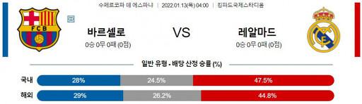 스페인 슈퍼컵 1월 13일 04:00 FC 바르셀로나 : 레알 마드리드
