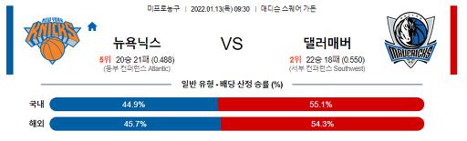 1월 13일 NBA분석 뉴욕 : 댈러스